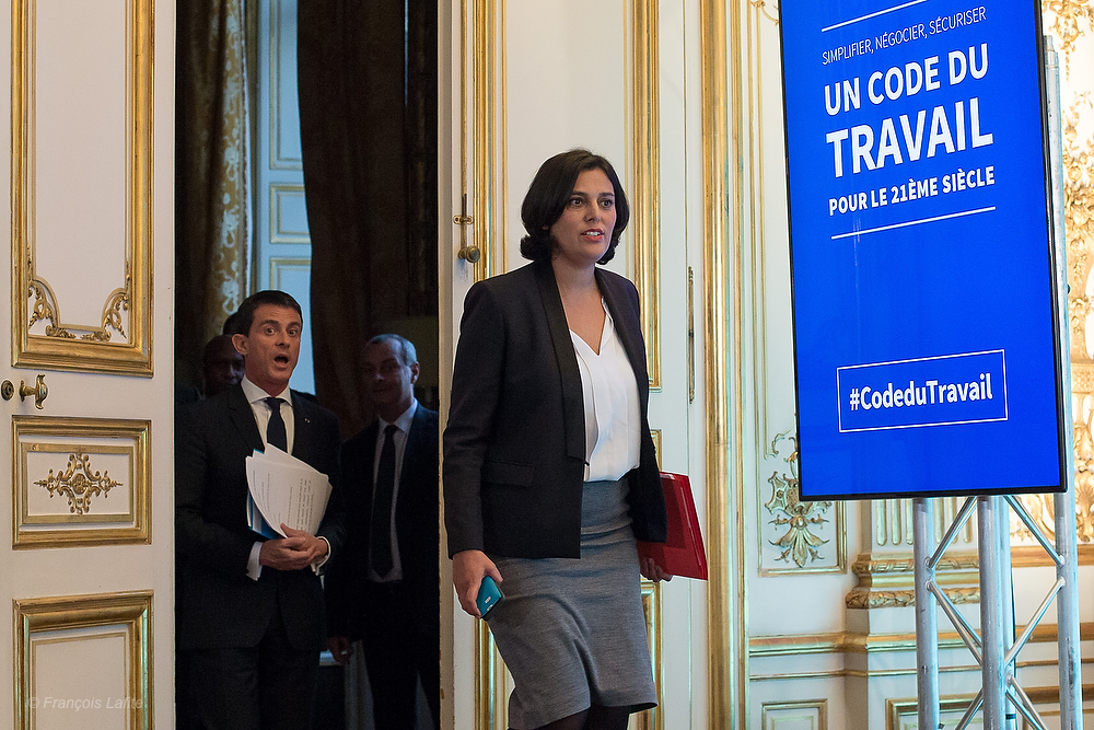 Manuel VALLS et la Ministre du Travail, de l’Emploi, de la Formation professionnelle et du Dialogue social, Myriam EL KHOMRI, présentent les orientations du Gouvernement pour la reforme du Code du Travail en novembre 2015